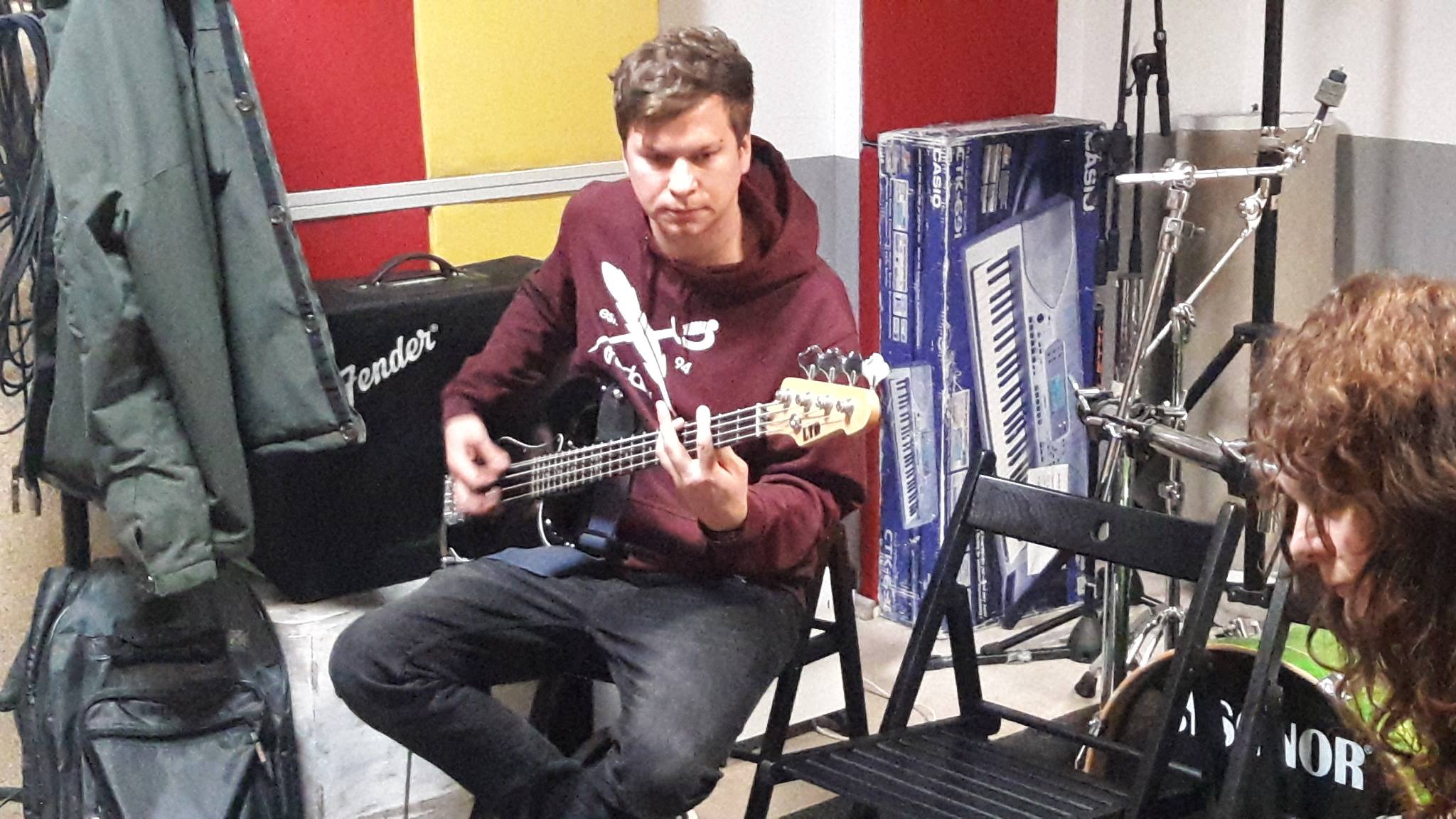 Polaznici uče osnove bas gitare pod budnim okom našeg mentora Brune Mičetića. Tehnike prstiju, trzalice, osnove slapanja i popanja, drukčije boja tona i mnoštvo drugih trikova redovito se svladavaju na radionicama.